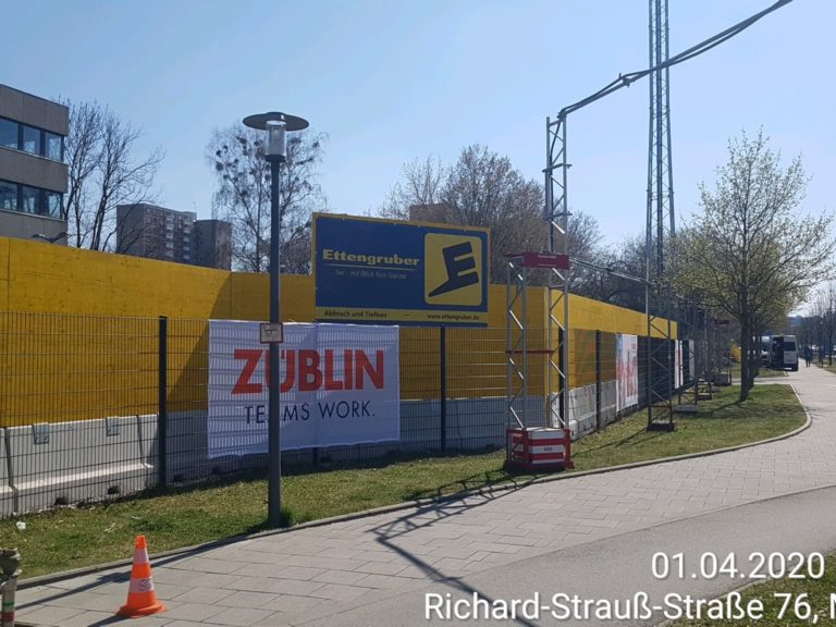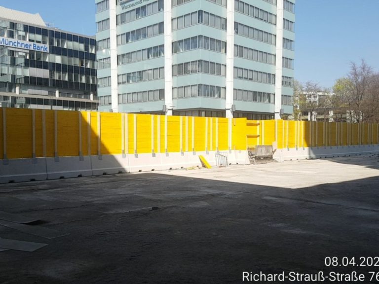 - Errichtung eines massiven Bauzaunes mit Schwerlastwänden und Holzbeplankung (Höhe 3,0 m)