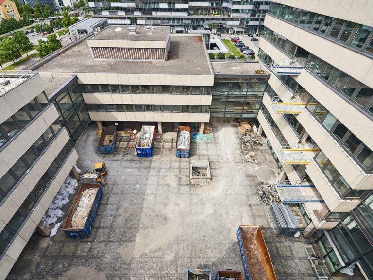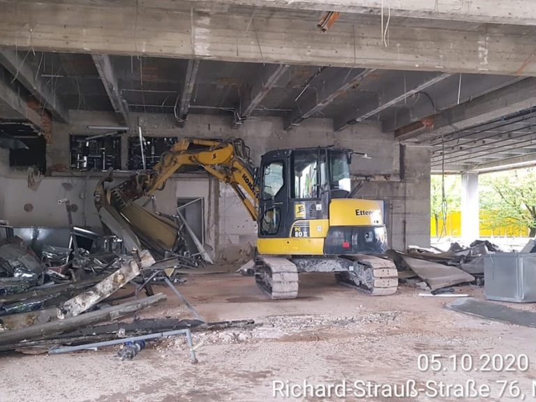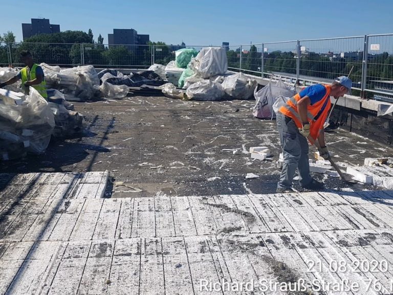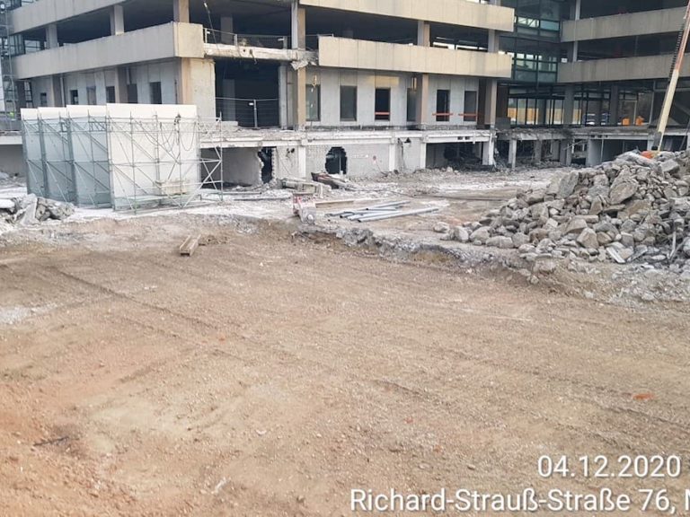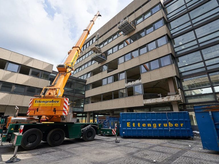 - Umfangreiche Schutzmaßnahmen z.B. Abbruchschutzgerüst mit Staubschutzverhängung, Schall- und Lärmschutzwand