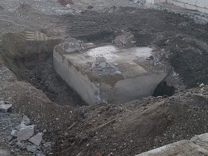 Abbruch der Gebäude, komplette Grundstück-Freimachung als Vorbereitung zum Einbringen des Baugrubenverbaus