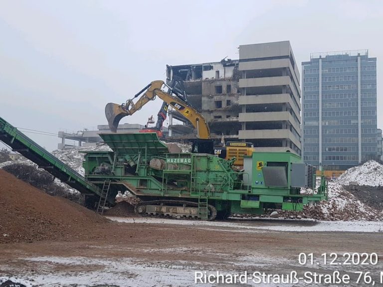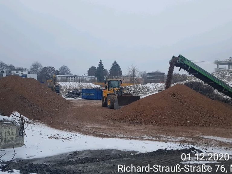 - Aufbereitung von ca. 45.000 to mineralischen Bauschutt mit besonderen Lärmschutzmaßnahmen (siehe Konzept) auf Korngröße von 0/56